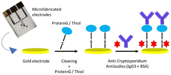 - Luka, G.S.; Najjaran, H.; Hoorfar, M. On-Chip-Based Electrochemical Biosensor for the Sensitive and Label-Free Detection of Cryptosporidium. Sci. Rep. 2022, 12, 6957. [Google Scholar] [CrossRef]