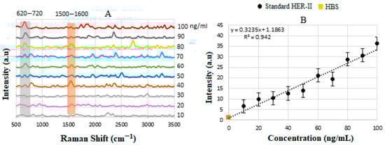 - Khosroshahi, M.E.; Patel, Y. Reflective FT-NIR and SERS Study of HER-II breast cancer biomarker in blood serum using plasmonic-active nanostructured thin film immobilized with oriented monoclonal antibody. J. Biophotonics 2023, 16, e202200252. [Google Scholar] [CrossRef]