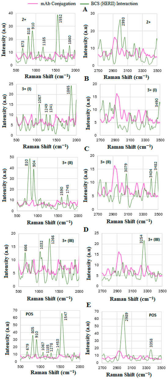 4.6. SERS of Conjugation and Interaction of BCS HER-II Samples