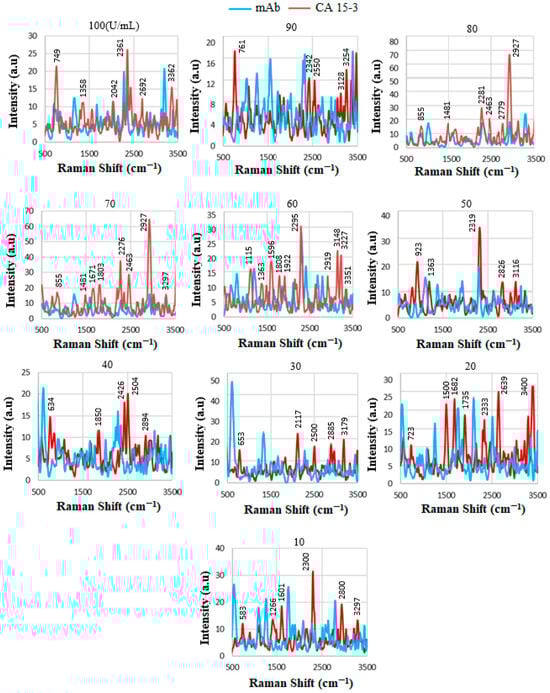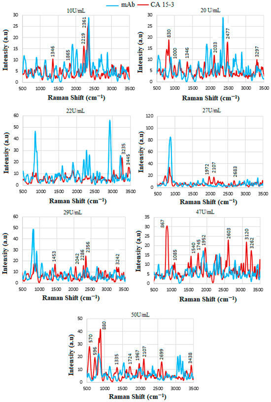 - Khosroshahi, M.E.; Patel, Y.; Chabok, R. Non-invasive optical characterization and detection of CA 15-3 breast cancer bi-omarker in blood serum using monoclonal antibody-conjugated gold nanourchin and surface-enhanced Raman scattering. Lasers Med. Sci. 2023, 38, 24. [Google Scholar] [CrossRef]