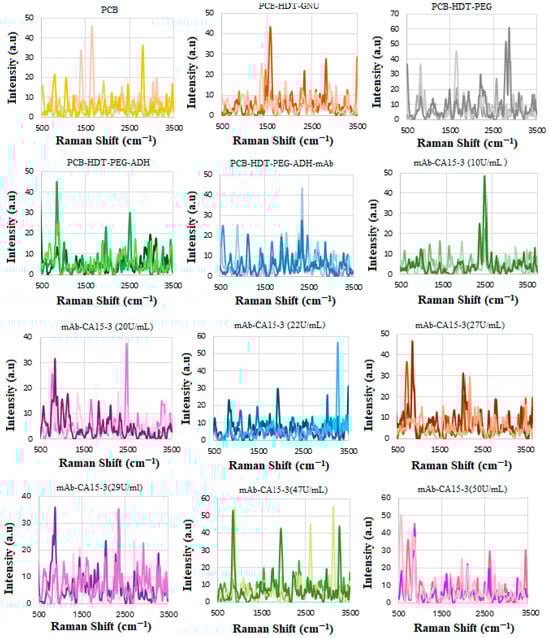 - Khosroshahi, M.E.; Patel, Y.; Umashanker, V. Targeted FT-NIR and SERS Detection of Breast cancer HER-II biomarkers in blood serum using PCB-based plasmonic active nanostructured thin film label-free immunosensor immobilized with directional GNU-conjugated antibody. Sensors 2024, 24, 5378. [Google Scholar] [CrossRef]