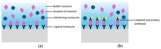 (a) Representation of a label-free biosensor and (b) a label-based biosensor.
