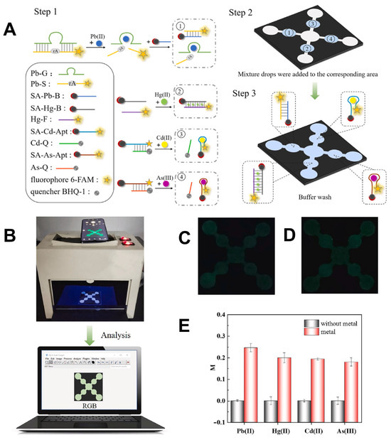 - Yuan, M.; Li, C.; Zheng, Y.; Cao, H.; Ye, T.; Wu, X.; Hao, L.; Yin, F.; Yu, J.; Xu, F. A portable multi-channel fluorescent paper-based microfluidic chip based on smartphone imaging for simultaneous detection of four heavy metals. Talanta 2024, 266, 125112. [Google Scholar] [CrossRef] [PubMed]