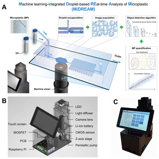 - Jeon, J.W.; Choi, J.W.; Shin, Y.; Kang, T.; Chung, B.G. Machine learning-integrated droplet microfluidic system for accurate quantification and classification of microplastics. Water Res. 2025, 274, 123161. [Google Scholar] [CrossRef] [PubMed]