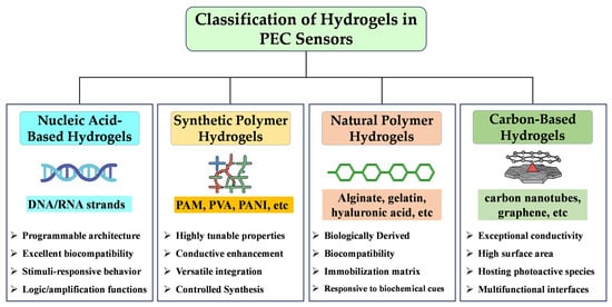 2.1. Classification of Hydrogels in PEC Sensors