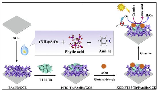 | Guanine | Polyaniline hydrogel (PAniHs) | Self-redox conductive hydrogel matrix | GCE/PAniHs/PTB7–Th/XOD | 0.1–80 μM | 0.02 μM | Aciclovir tablets | [117] |