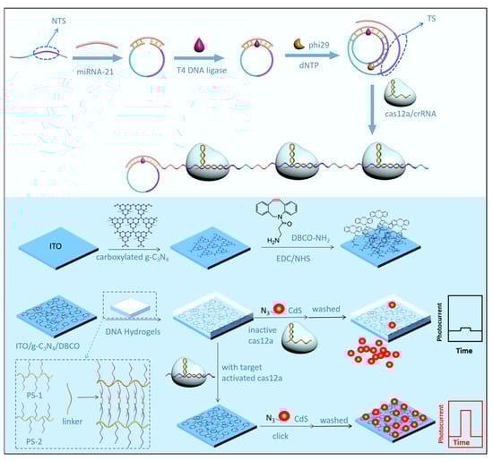 - Hao, N.; Lu, J.; Chi, M.; Xiong, M.; Zhang, Y.; Hua, R.; Wang, K. A universal photoelectrochemical biosensor for dual microRNA detection based on two CdTe nanocomposites. J. Mater. Chem. B 2019, 7, 1133–1141. [Google Scholar] [CrossRef] [PubMed]