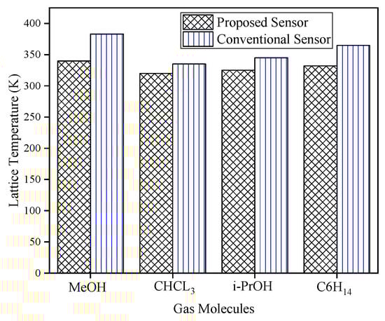 Lattice temperature versus different gas analytes for the proposed and conventional gas sensors.