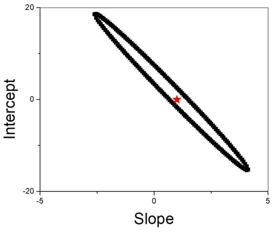 Additionally, a statistical comparison between the MIP/rGO/GCE sensor and HPLC data was carried out using the Elliptical Joint Confidence Region (EJRC) approach [56]. EJRC is particularly useful for detecting significant discrepancies across varying concentration levels [56]. As depicted in Figure 10, the EJRC encompassed the point (1,0), suggesting no statistically significant difference between the two methods at a 95% confidence level. These findings supported the conclusion that the electrochemical sensor is a reliable tool to determine PAR in pharmaceutical samples in an expensive and simple way.