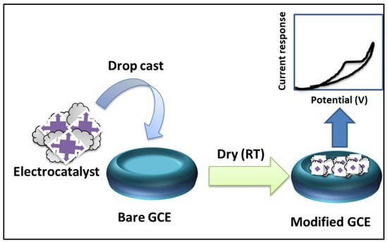 Electrochemical sensors involve the assembly of three electrodes: the working electrodes consist of a glassy carbon electrode (GCE), a gold (Au) and indium tin oxide (ITO) screen-printed carbon electrode (SPCE), a fluorine-doped tin oxide (FTO) carbon paste electrode (CPE), whereas a platinum electrode is used as a counter electrode with silver/silver chloride as the reference electrode. A schematic for the fabrication of the electrochemical sensor is illustrated in Scheme 1. The electrochemical performance of the sensors can be evaluated in terms of the limit of detection (LOD) and sensitivity, as described in the equations given below: