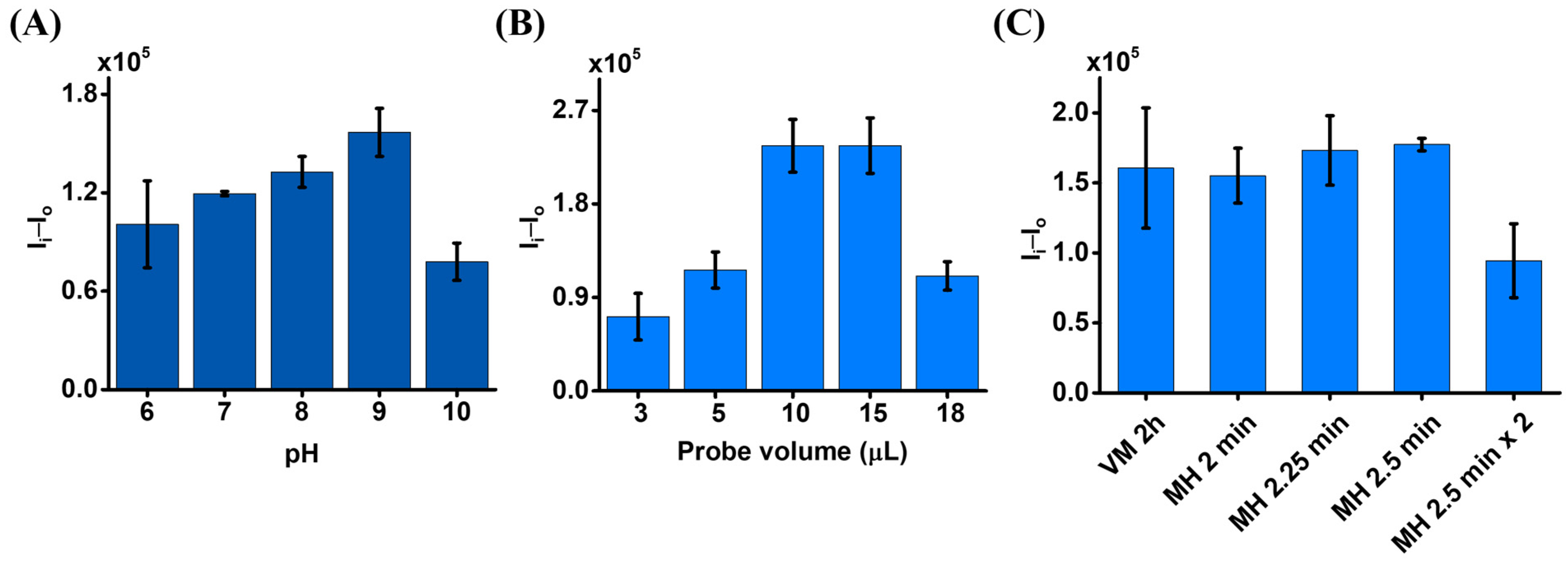 2.3. Preparation and Optimization of the Magnetic Probes