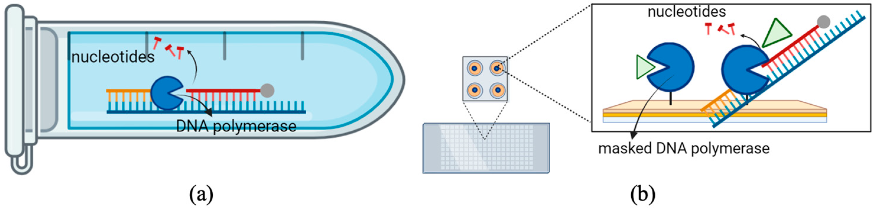 36]. The immobilization techniques demonstrated here also provide a foundation for the development of biosensors. T7 DNA polymerase and similar enzymes can be integrated into analytical platforms for medical diagnostics, environmental monitoring, and food safety testing, where precision and repeatability are essential. To further optimize performance, future research should refine surface chemistry, linker architecture, and immobilization density while coupling enzyme engineering to enhance selectivity and longevity.