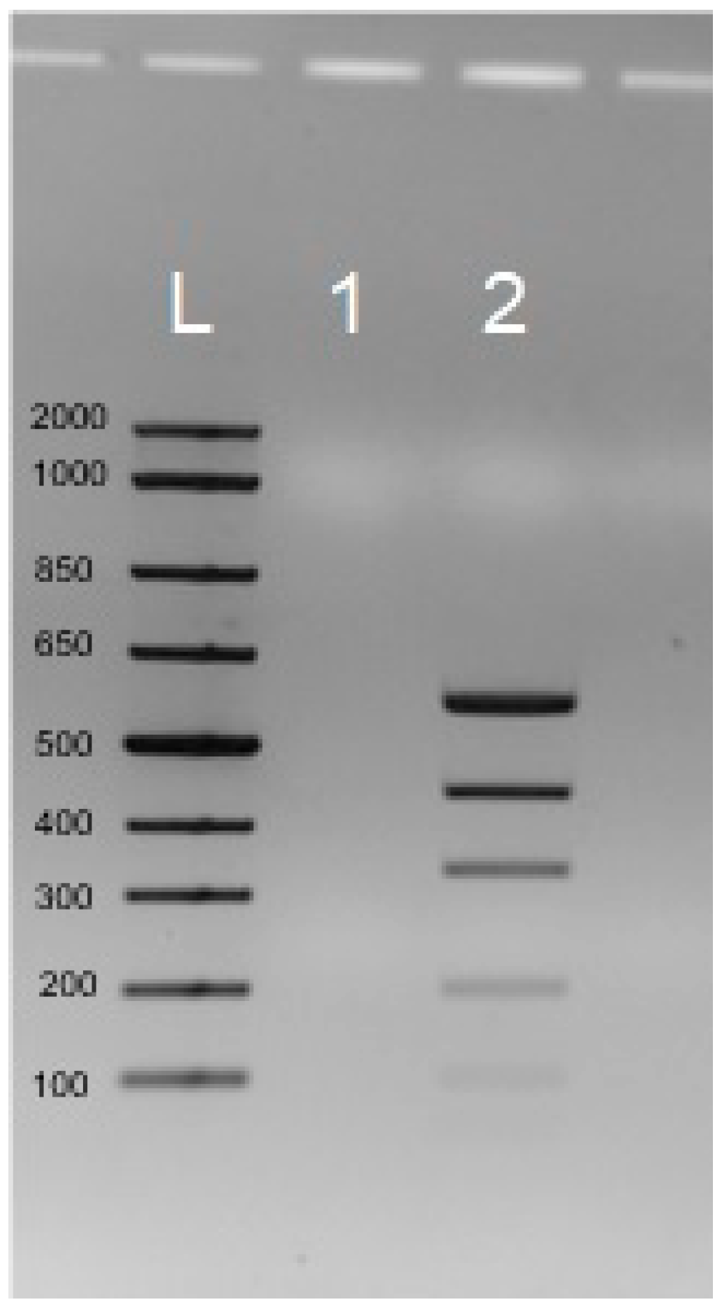 Agarose (R0491), Tris–acetate–EDTA (TAE) buffer (50×; B49), phosphate-buffered saline (PBS, 10×, pH 7.4; AM9625), nuclease-free water (AM9906), a low-DNA-mass ladder (10068013), T7 DNA polymerase (10 U/µL, EP0081), and the corresponding 10× reaction buffer were supplied by Thermo Scientific Baltics, Vilnius, Lithuania.