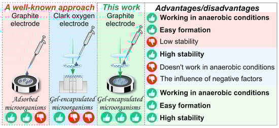 - Arlyapov, V.A.; Yudina, N.Y.; Machulin, A.V.; Alferov, V.A.; Ponamoreva, O.N.; Reshetilov, A.N. A Biosensor Based Microorganisms Immobilized in Layer-by-Layer Films for the Determination of Biochemical Oxygen Demand. Appl. Biochem. Microbiol. 2021, 57, 133–141. [Google Scholar] [CrossRef]
