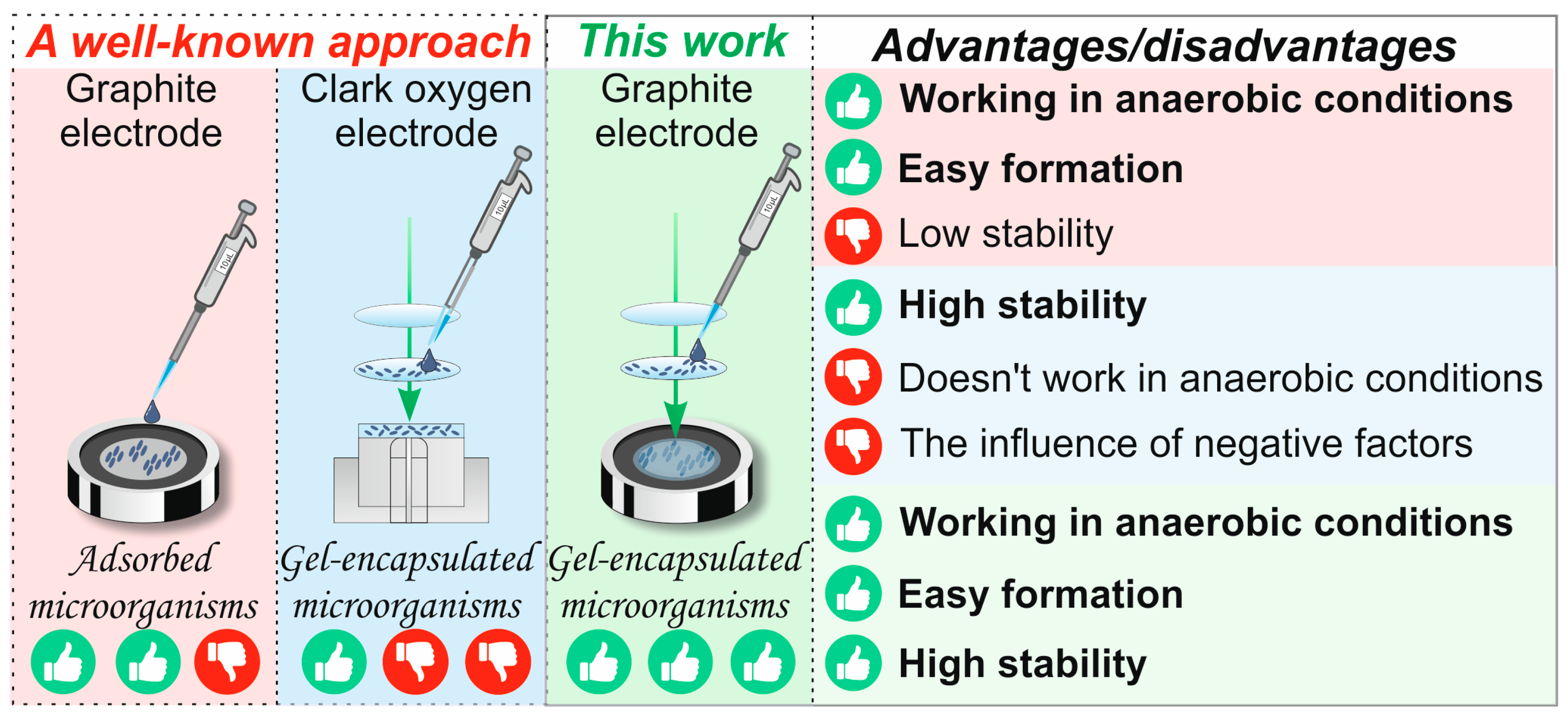 - Kharkova, A.; Perchikov, R.; Kurbanalieva, S.; Osina, K.; Popova, N.; Machulin, A.; Kamanina, O.; Saverina, E.; Saltanov, I.; Melenkov, S.; et al. Targeted Formation of Biofilms on the Surface of Graphite Electrodes as an Effective Approach to the Development of Biosensors for Early Warning Systems. Biosensors 2024, 14, 239. [Google Scholar] [CrossRef] [PubMed]