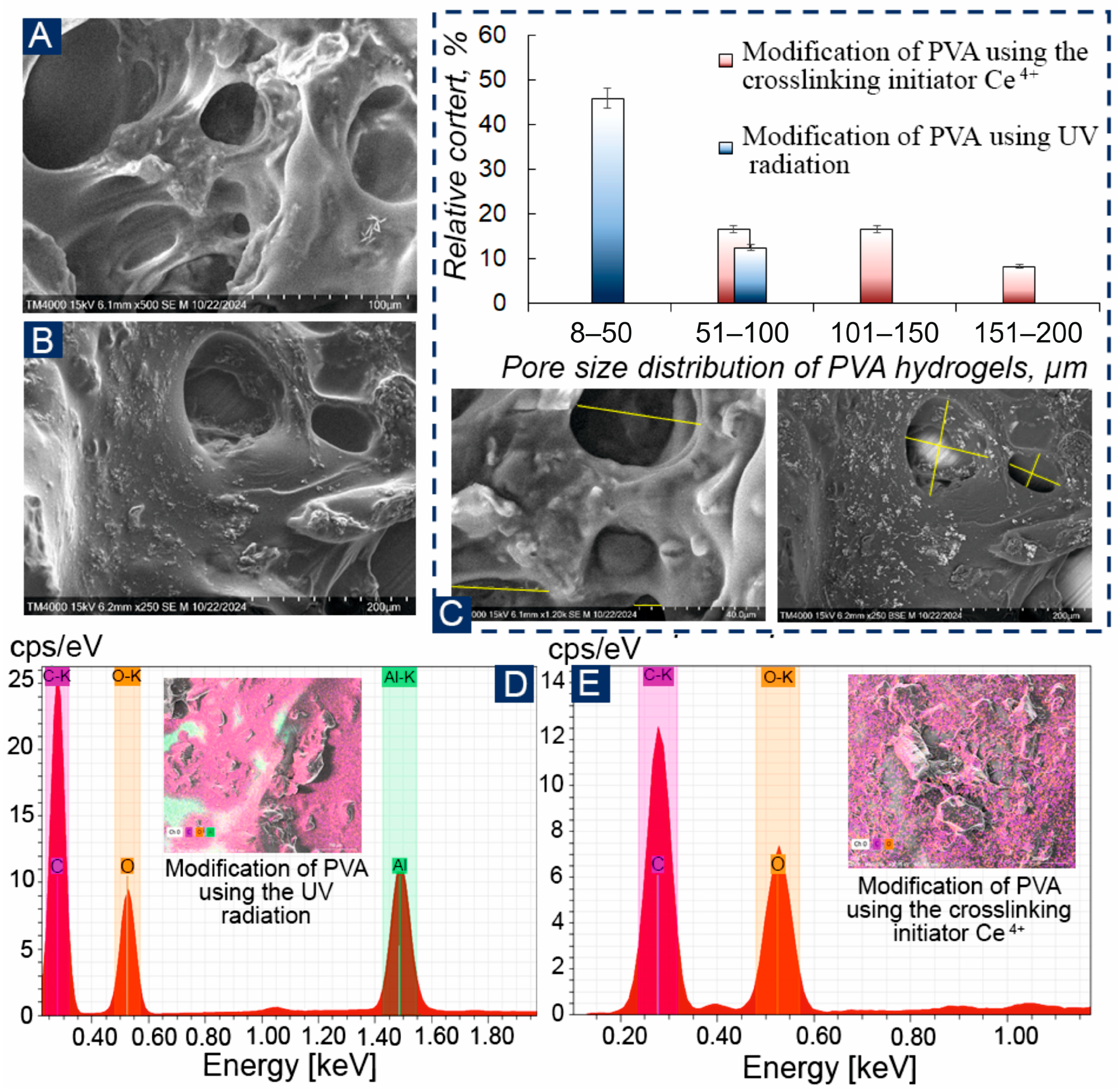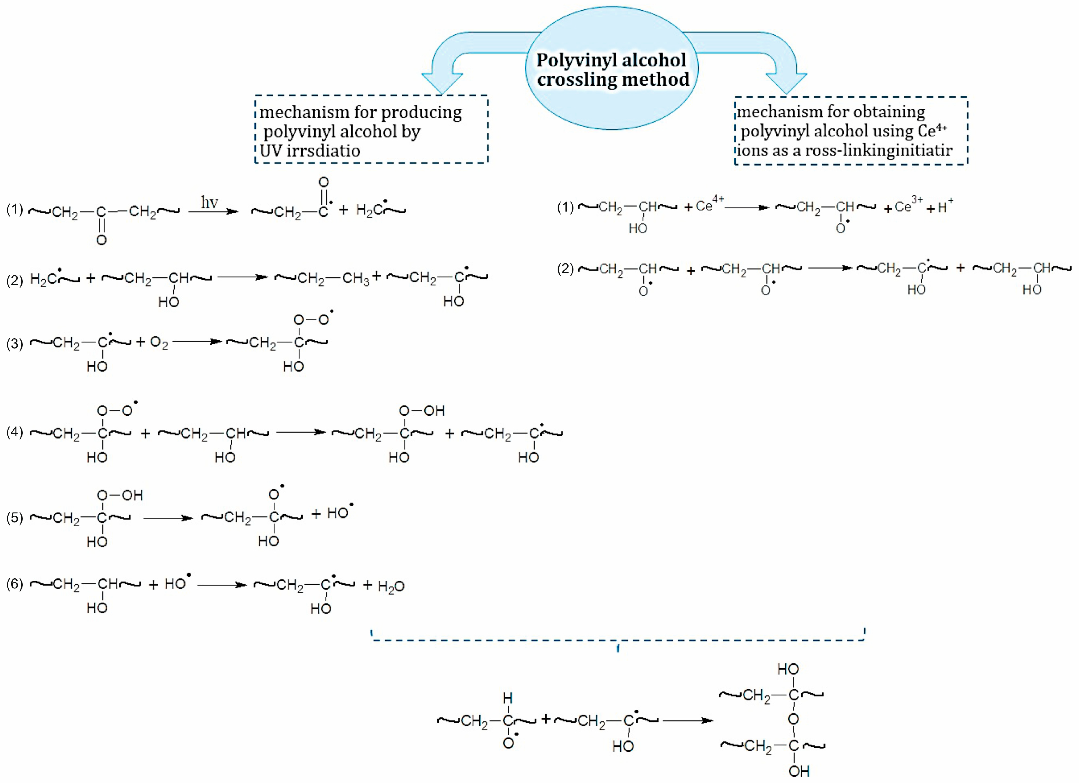 2.2. Modification of Polyvinyl Alcohol Using Ce4+ Ions (PVA-Ce4+) as an Initiator of Crosslinking