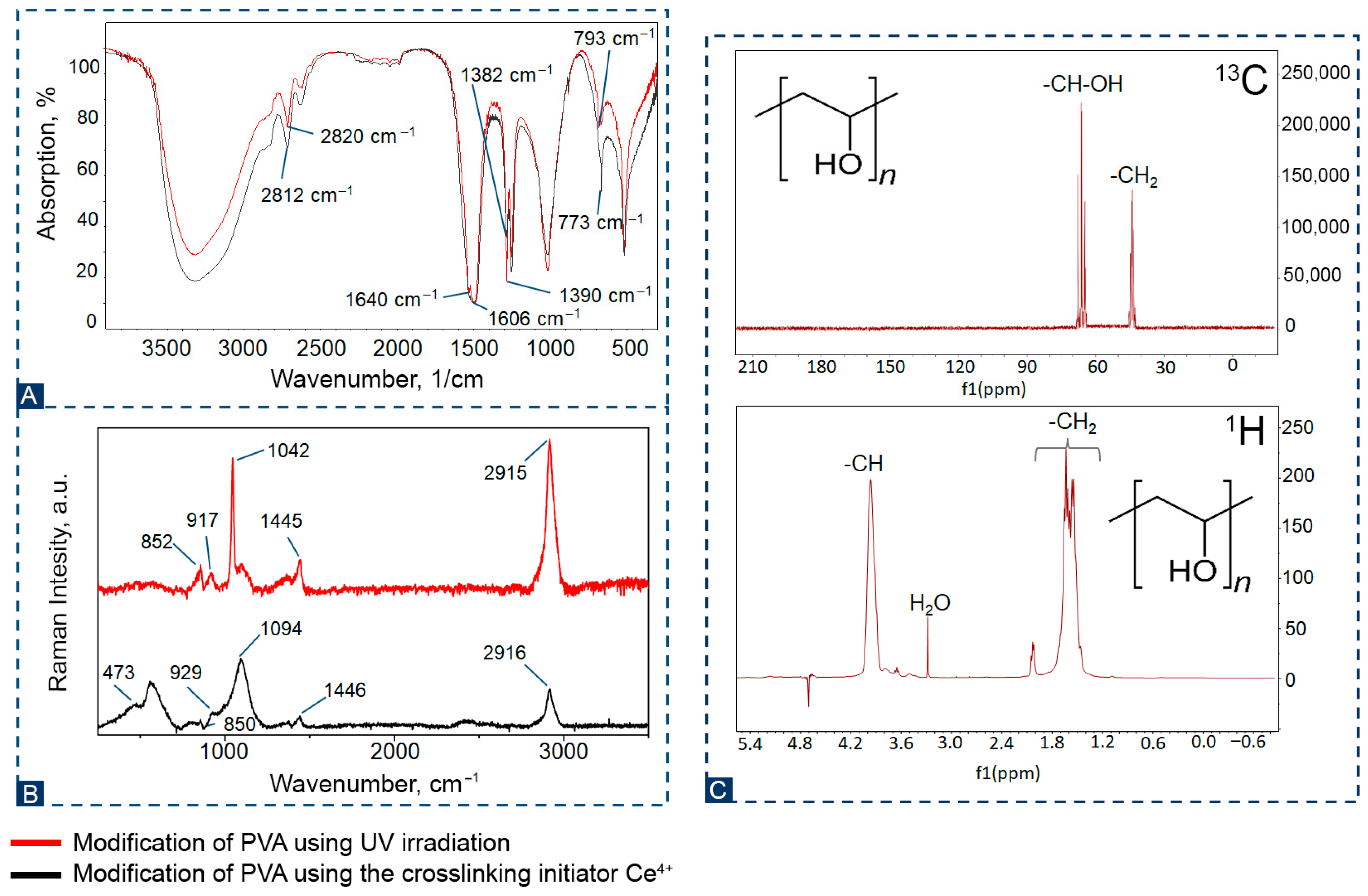 3.1. Synthesis and Investigation of the Chemical and Spatial Structure of the PVA Polymer
