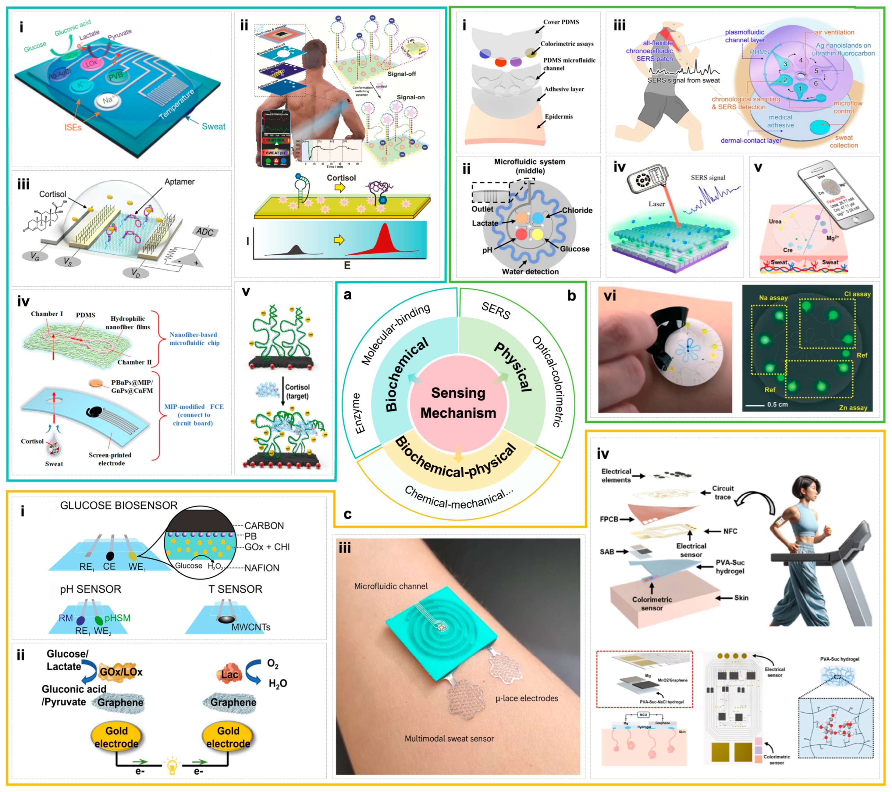 - Ma, C.-B.; Shang, X.; Sun, M.; Bo, X.; Bai, J.; Du, Y.; Zhou, M. Emerging Multifunctional Wearable Sensors: Integrating Multimodal Sweat Analysis and Advanced Material Technologies for Next-Generation Health Monitoring. ACS Sens. 2025, 10, 2388–2408. [Google Scholar] [CrossRef]