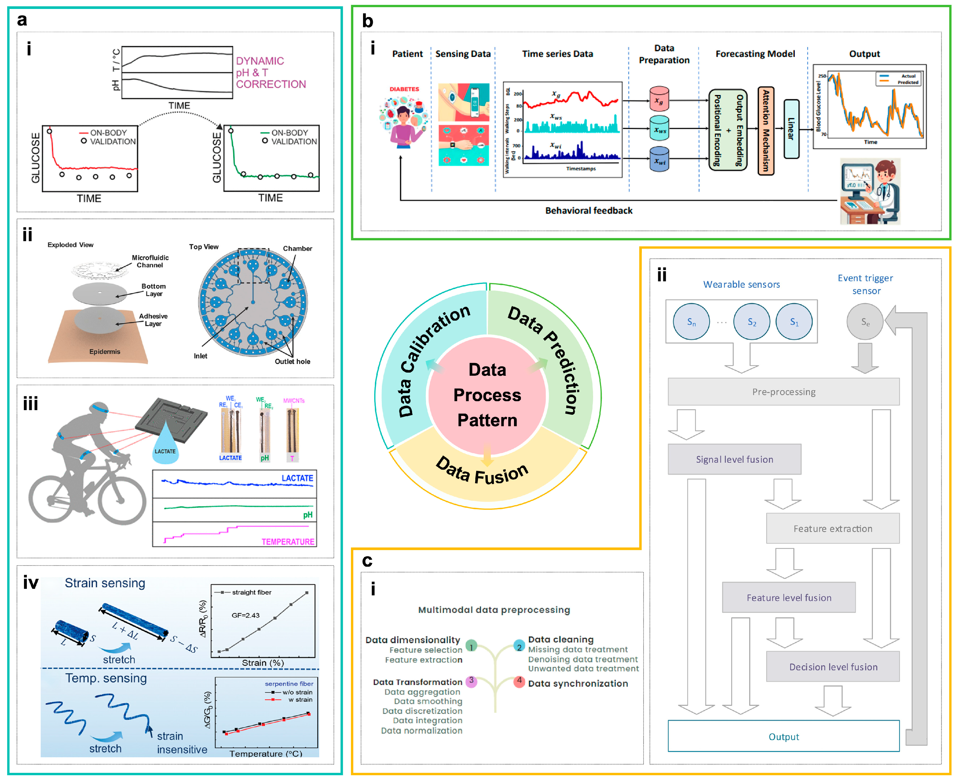 | Data Prediction | Higher prediction sensitivity Intelligent inference and individual assessment Boosted robustness Noise and artifact suppression | Sample size and data quality Model fitting and black-box interpretability Limited un-supervised/semi-supervised use in sweat sensing | ||