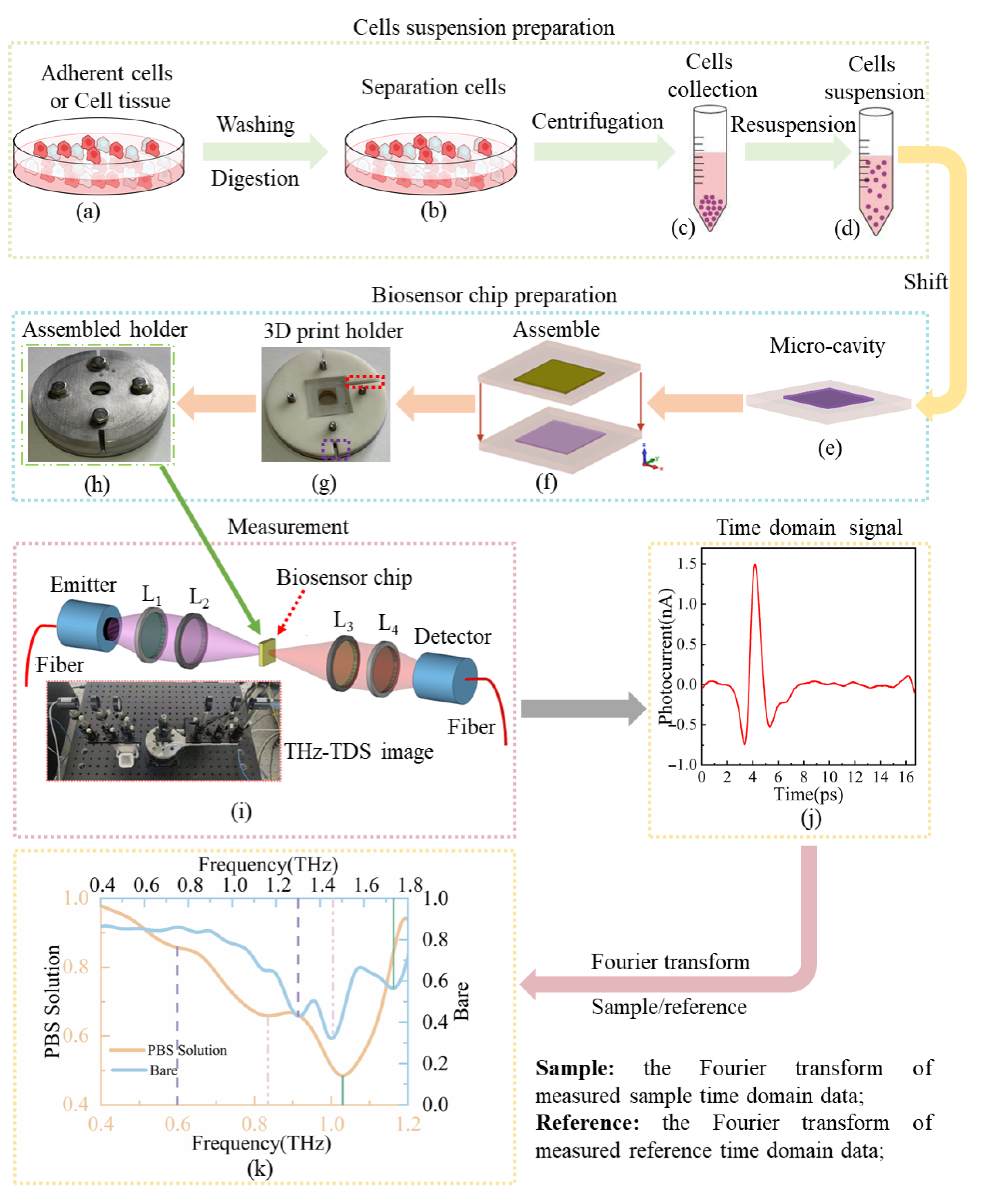 - Cao, Y.; Chen, J.; Zhang, G.; Fan, S.; Ge, W.; Hu, W.; Huang, P.; Hou, D.; Zheng, S. Characterization and Discrimination of Human Colorectal Cancer Cells Using Terahertz Spectroscopy. Spectrochim. Acta Part. A Mol. Biomol. Spectrosc. 2021, 256, 119713. [Google Scholar] [CrossRef]