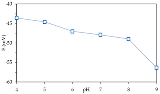 The effect of pH on ISE stability response was determined using a standard solution of 10−4 M (Mg(NO3)2) in 10−1 M phosphate-buffered solutions (pH 4–9) [18]. Selectivity () was assessed by the Separate Solution Method (SSM) using equimolar solutions of Mg2+ and the interfering ions K+, Na+, and Ca2+.