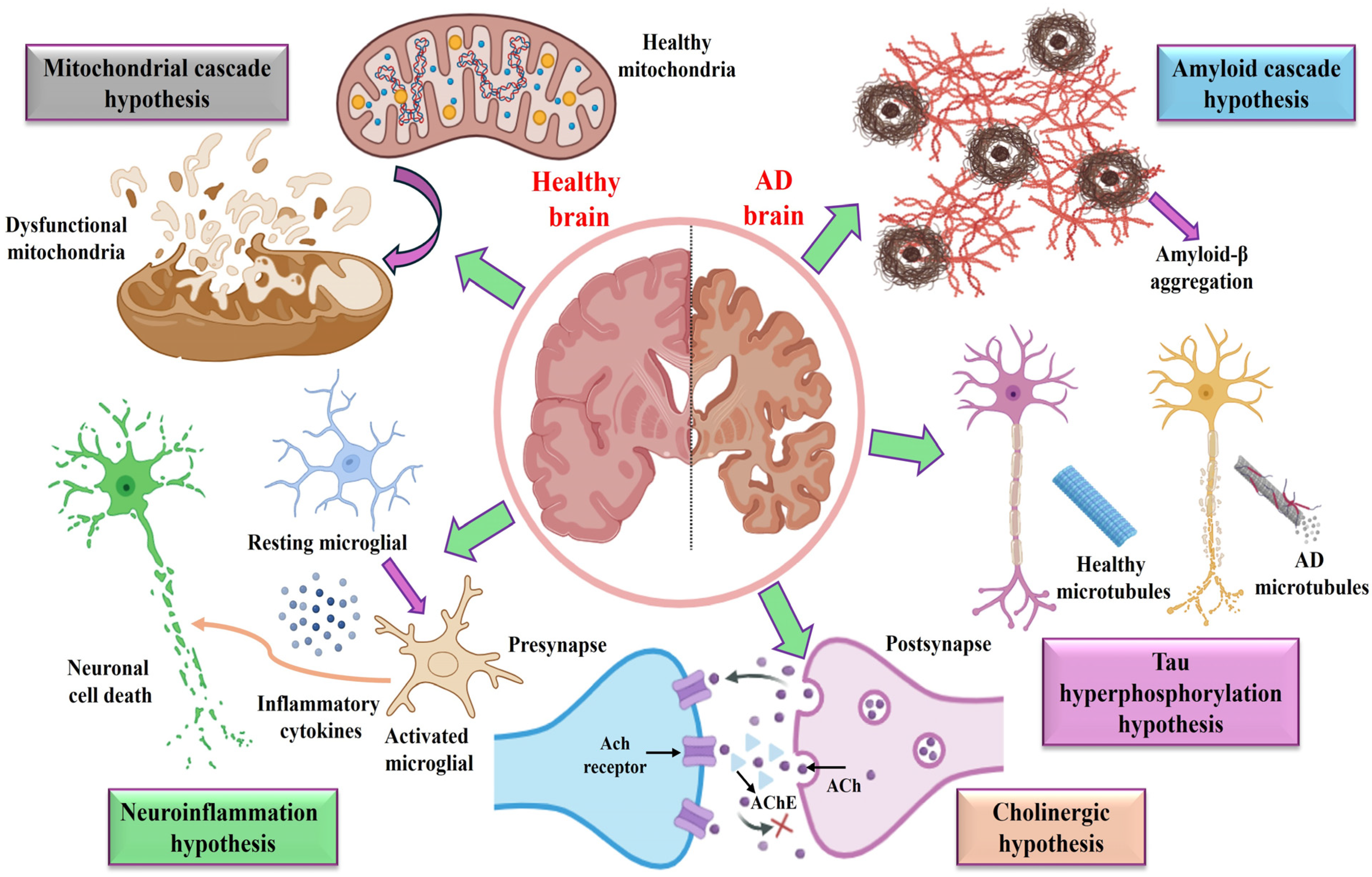 - Nasb, M.; Tao, W.; Chen, N. Alzheimer’s disease puzzle: Delving into pathogenesis hypotheses. Aging Dis. 2024, 15, 43. [Google Scholar]
