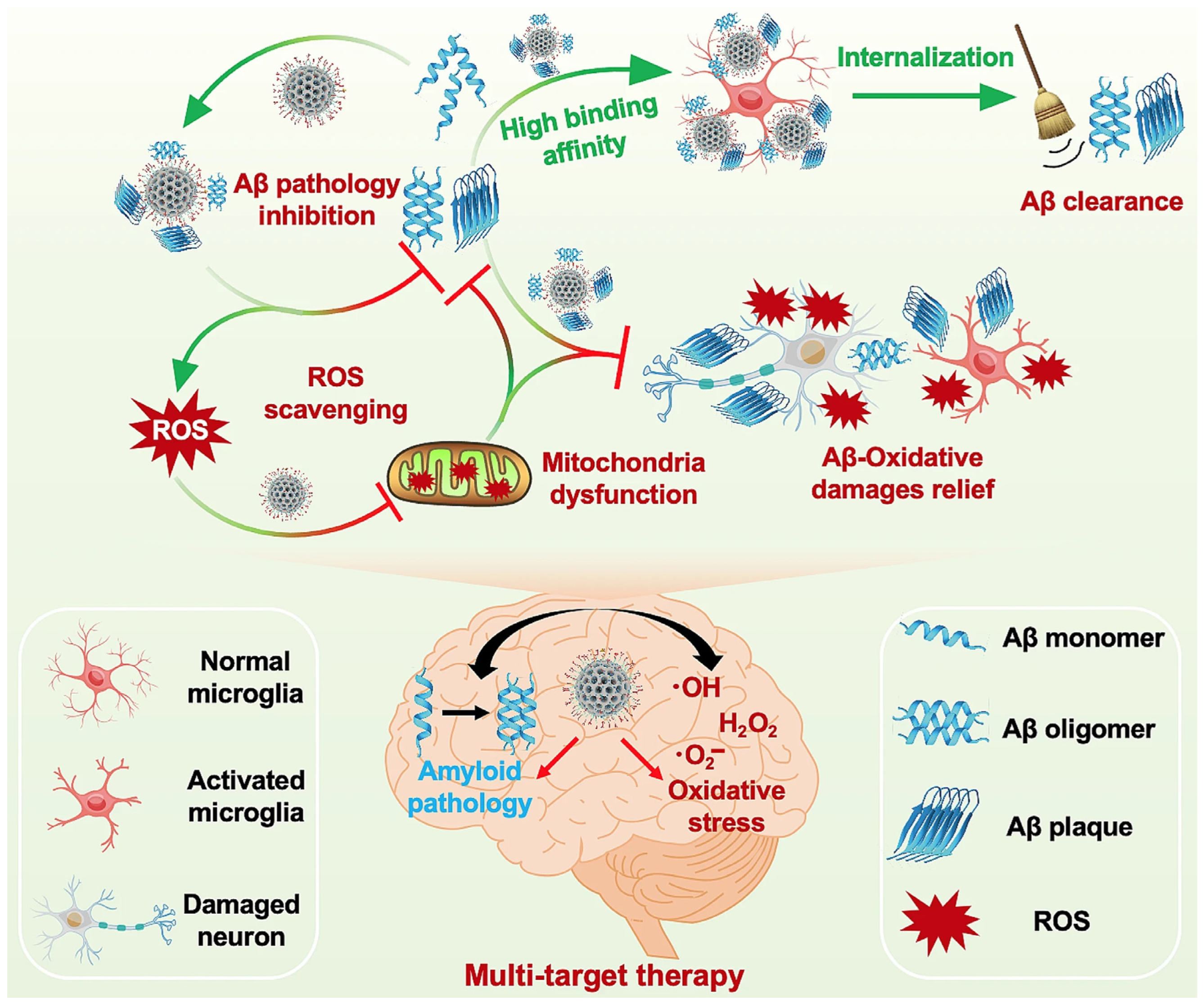 - Zhang, L.; Cao, K.; Xie, J.; Liang, X.; Gong, H.; Luo, Q.; Luo, H. Aβ42 and ROS dual-targeted multifunctional nanocomposite for combination therapy of Alzheimer’s disease. J. Nanobiotechnol. 2024, 22, 278. [Google Scholar] [CrossRef] [PubMed]