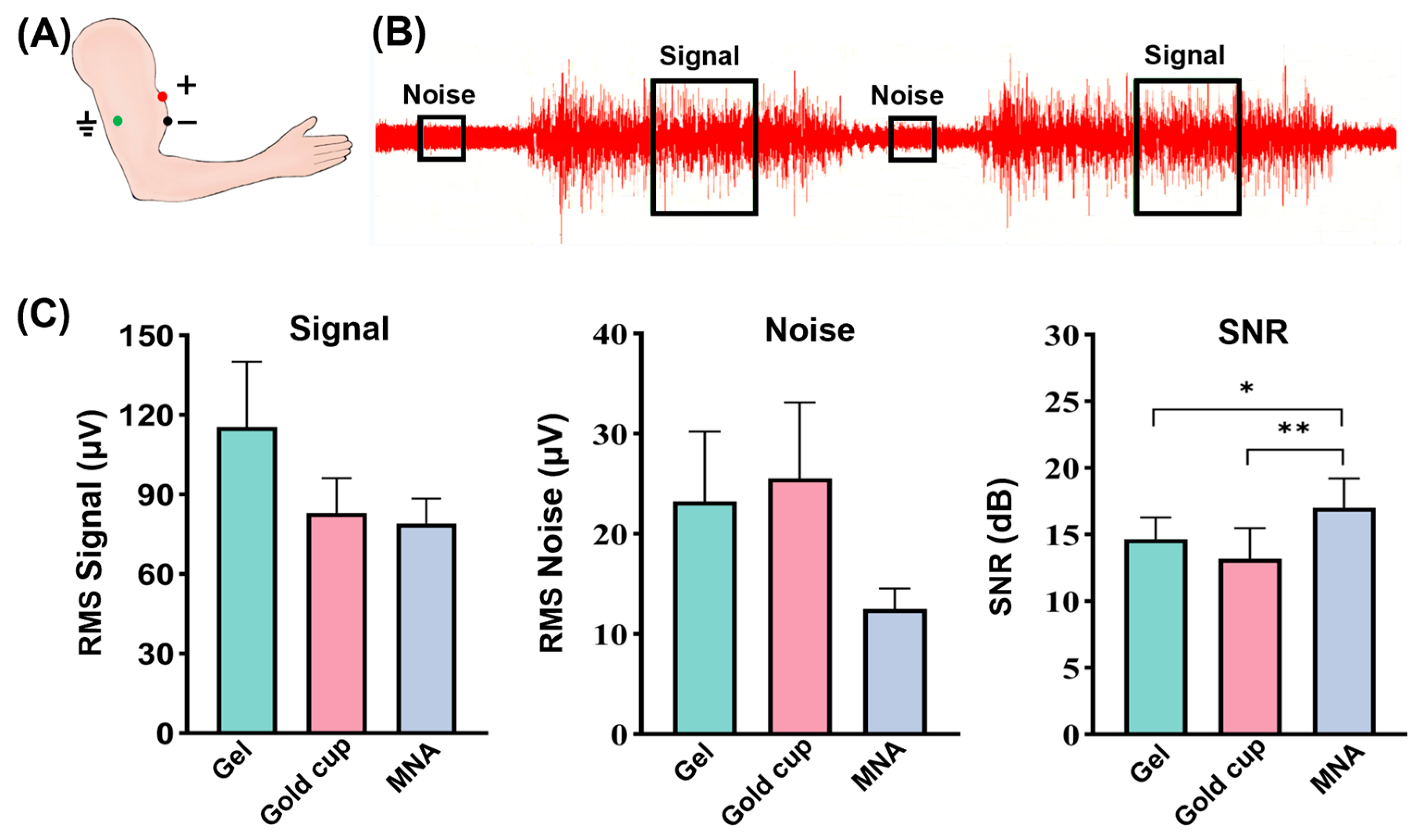Chicago/Turabian StyleJiang, Bo, Ye Wang, Ruiqing Li, Yan Zhou, Lihua Ma, Dingjie Suo, and Guangying Pei. 2026. "Development of a Flexible Microneedle Array Electrode with a High Signal-to-Noise Ratio for Surface Bioelectrical Signal Recording" Biosensors 16, no. 2: 108. https://doi.org/10.3390/bios16020108