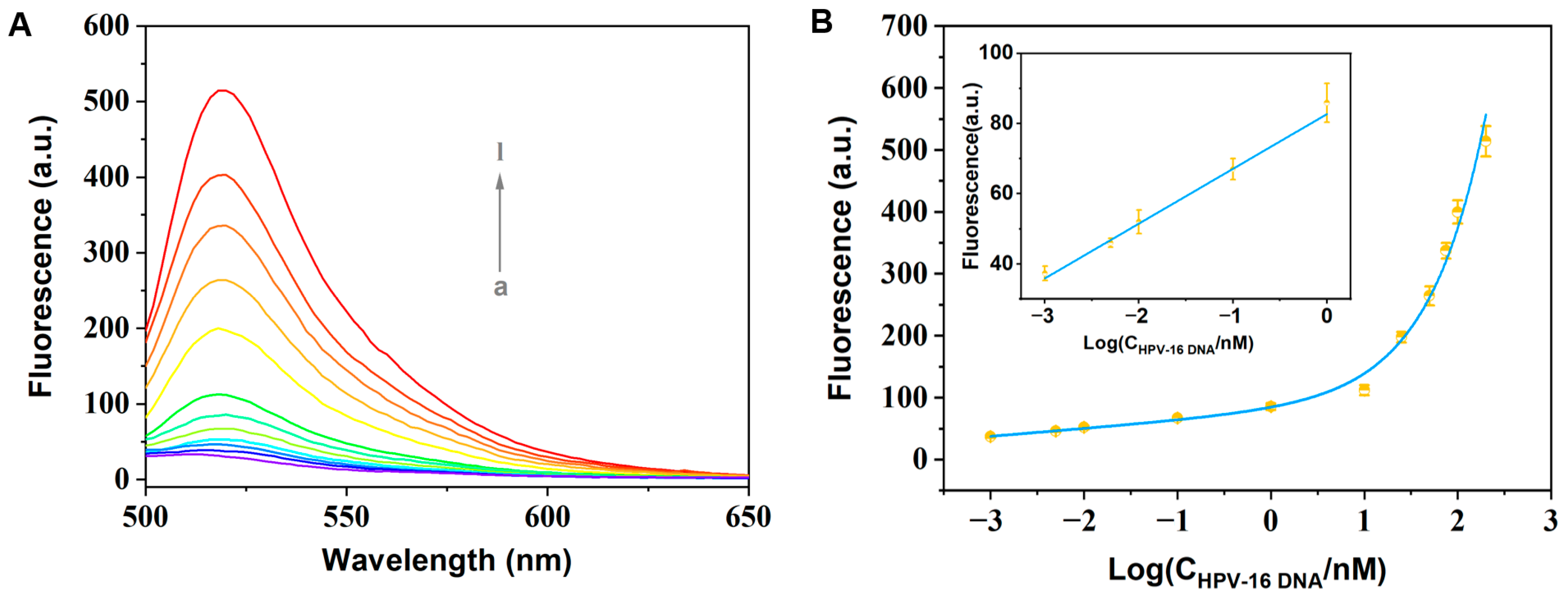 Chicago/Turabian StyleWu, Miaoxing, Guan Lin, Jingyi Dong, Aolan Zeng, Huibo Hong, Zheng Chen, and Chengyi Hong. 2026. "Highly Sensitive Fluorescent Detection of HPV-16 DNA Using Tungsten Disulfide Nanosheets and Exonuclease III-Assisted Signal Amplification" Biosensors 16, no. 2: 111. https://doi.org/10.3390/bios16020111