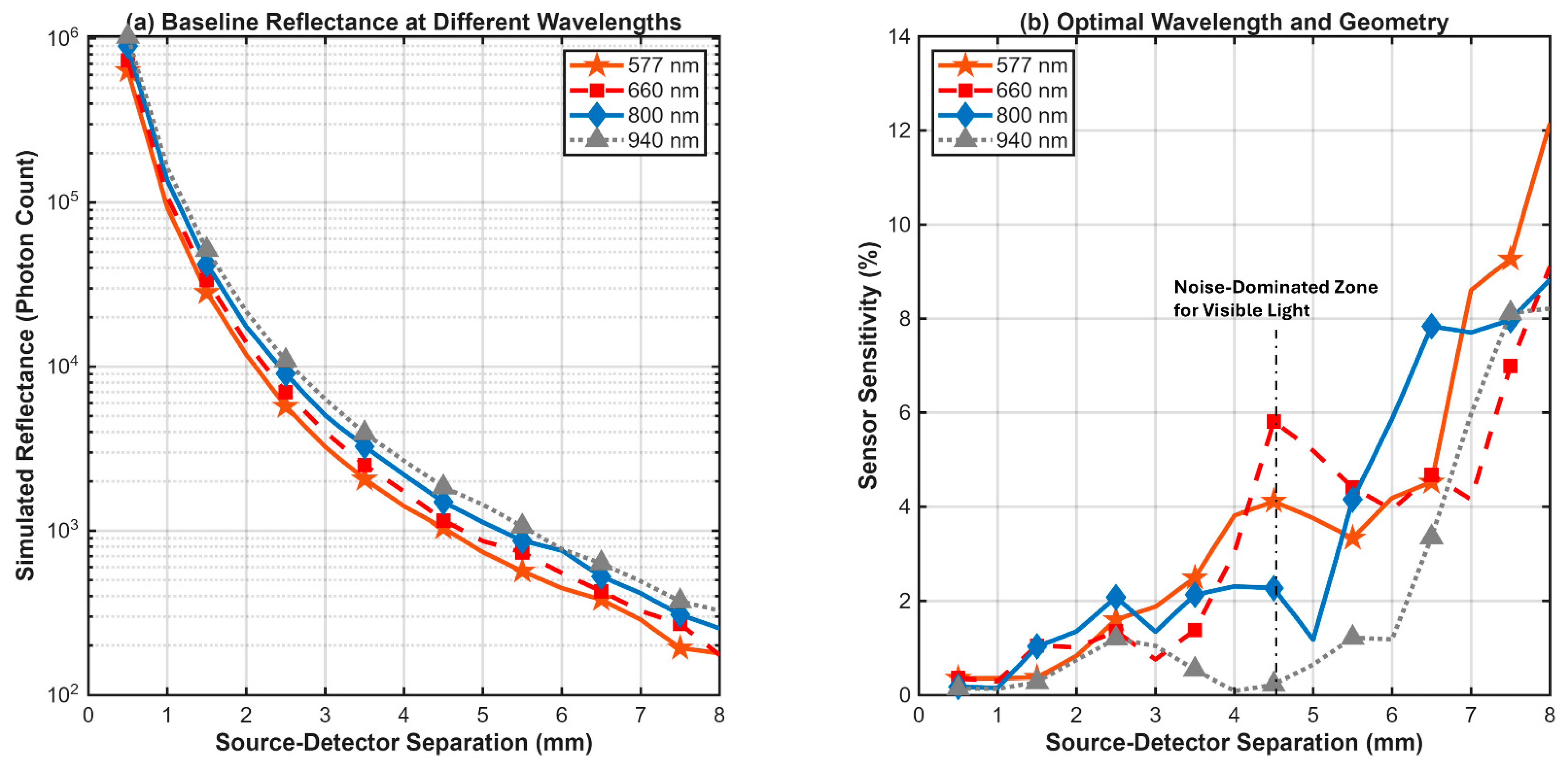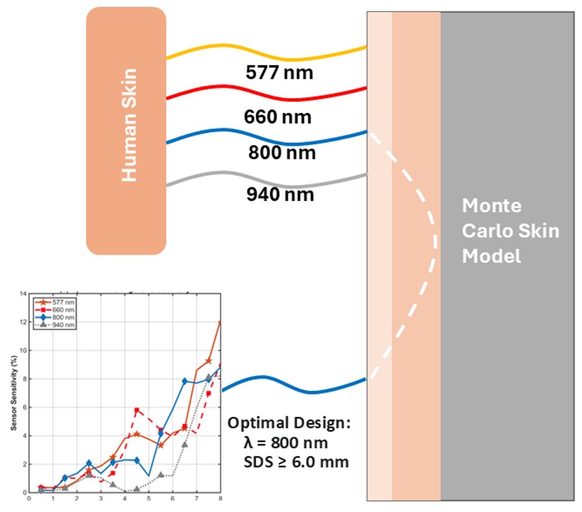 | 660 | 8.17 | 8 | Adv: High sensitivity. Disadv: Strong confounder from blood oxygenation (SpO2), moderate melanin interference. |