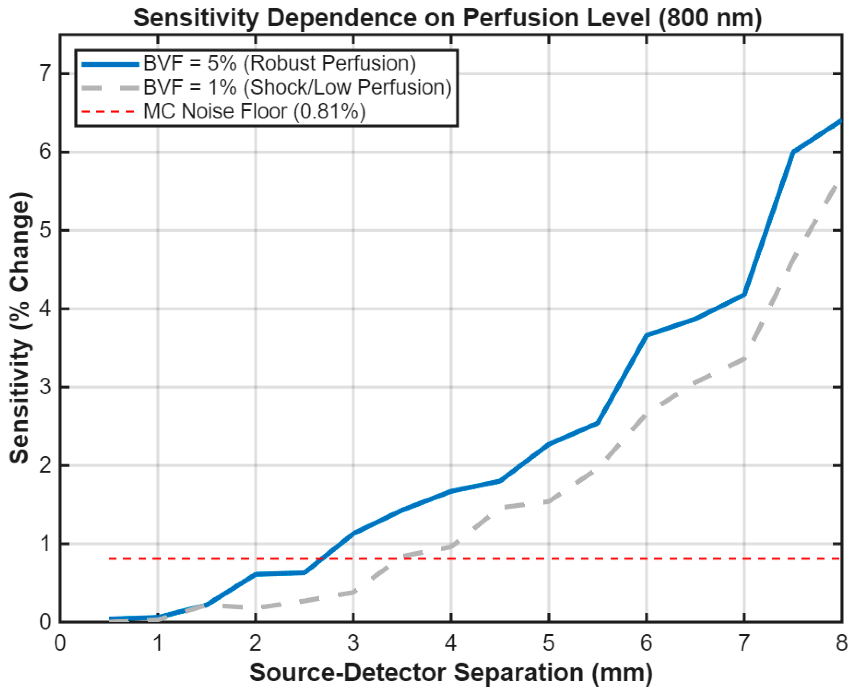 3.1. Dependence of Sensitivity on Dermal Blood Volume Fraction