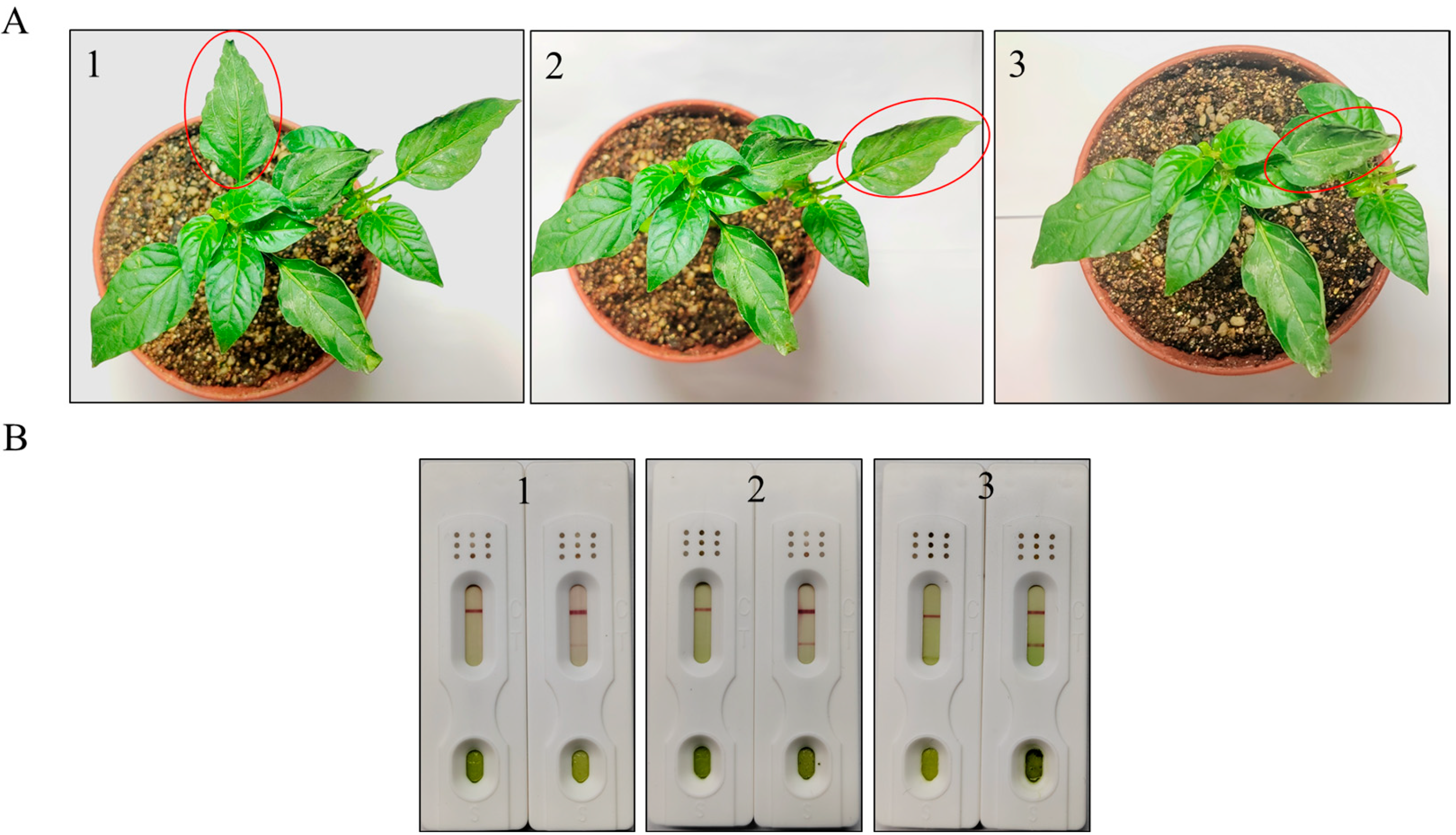 - Lu, J.; He, W.; Liu, Y.; Li, S.; Huang, X.; Wang, H.; Cao, X. Development of a colloidal gold-based immunochromatographic strip for rapid detection of Areca palm velarivirus 1. Front. Microbiol. 2025, 16, 1533170. [Google Scholar] [CrossRef] [PubMed]