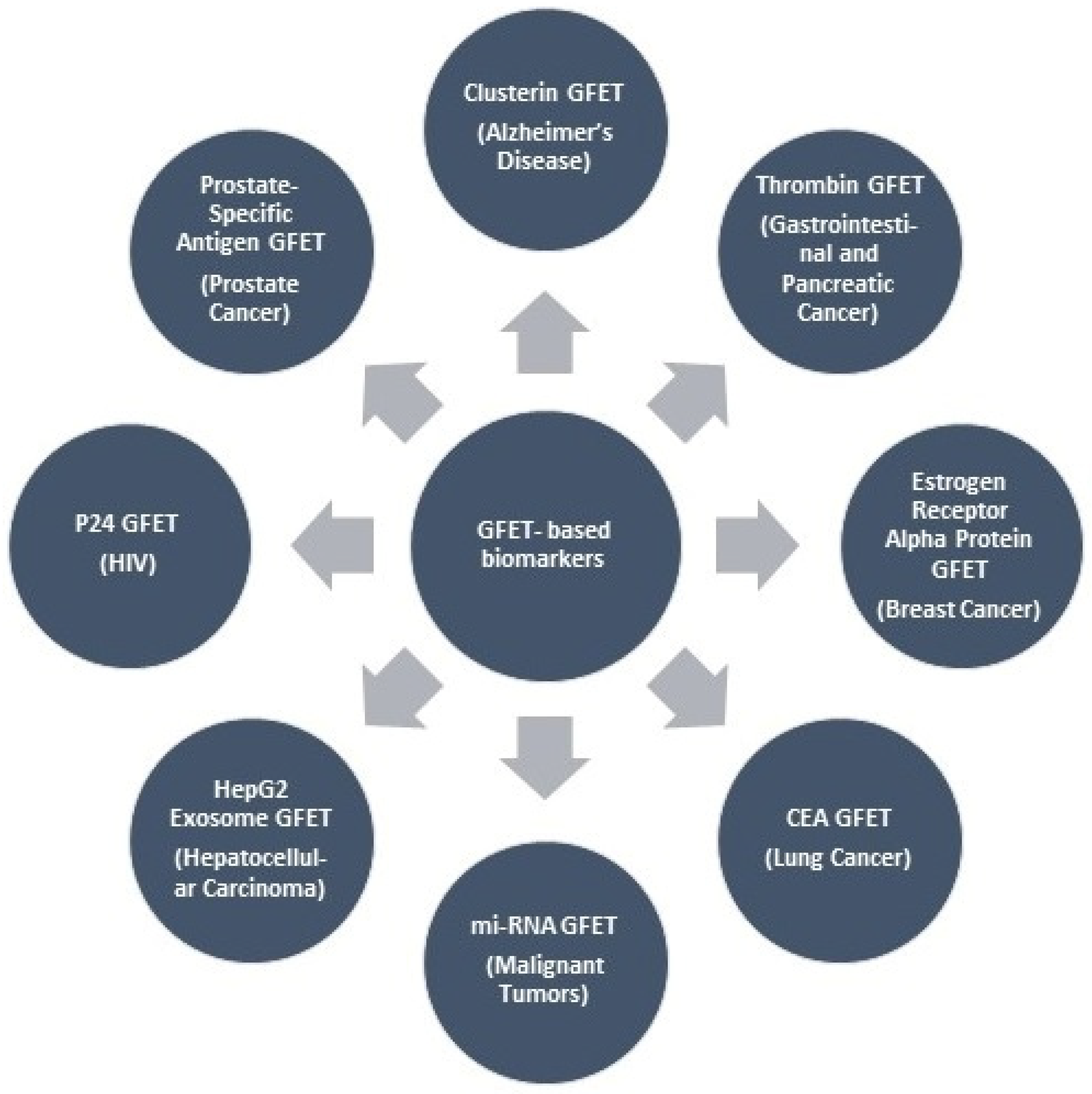 - Syedmoradi, L.; Ahmadi, A.; Norton, M.L.; Omidfar, K. A review on nanomaterial-based field effect transistor technology for biomarker detection. Microchim. Acta 2019, 186, 739. [Google Scholar] [CrossRef]