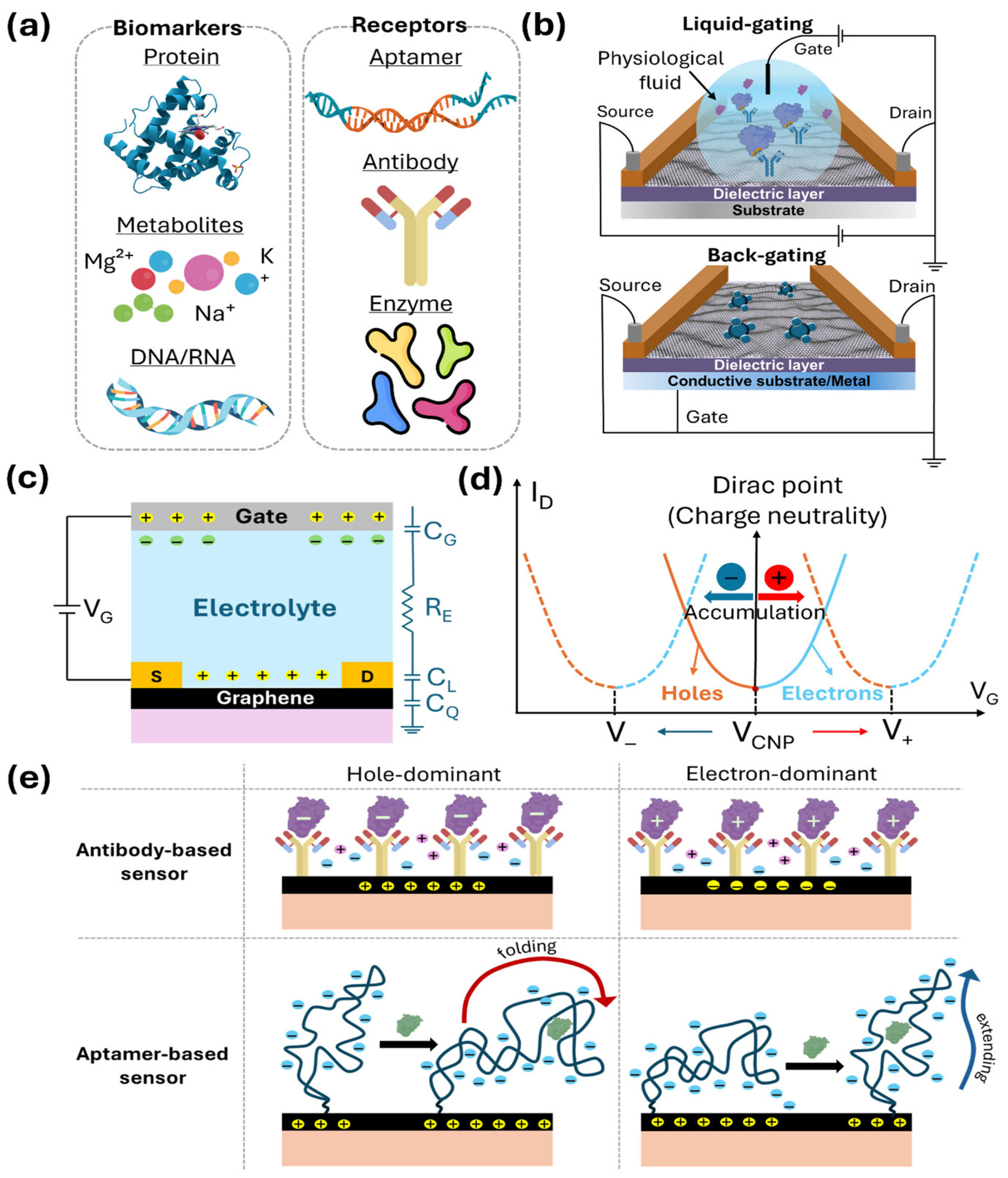 - Geiwitz, M.; Page, O.R.; Nichols, M.E.; Marello, T.; Hoar, C.; Akinwande, D.; Meyer, M.M.; Burch, K.S. Electrical readout strategies of GFET biosensors for real-world requirements. bioRxiv 2026. [Google Scholar] [CrossRef]