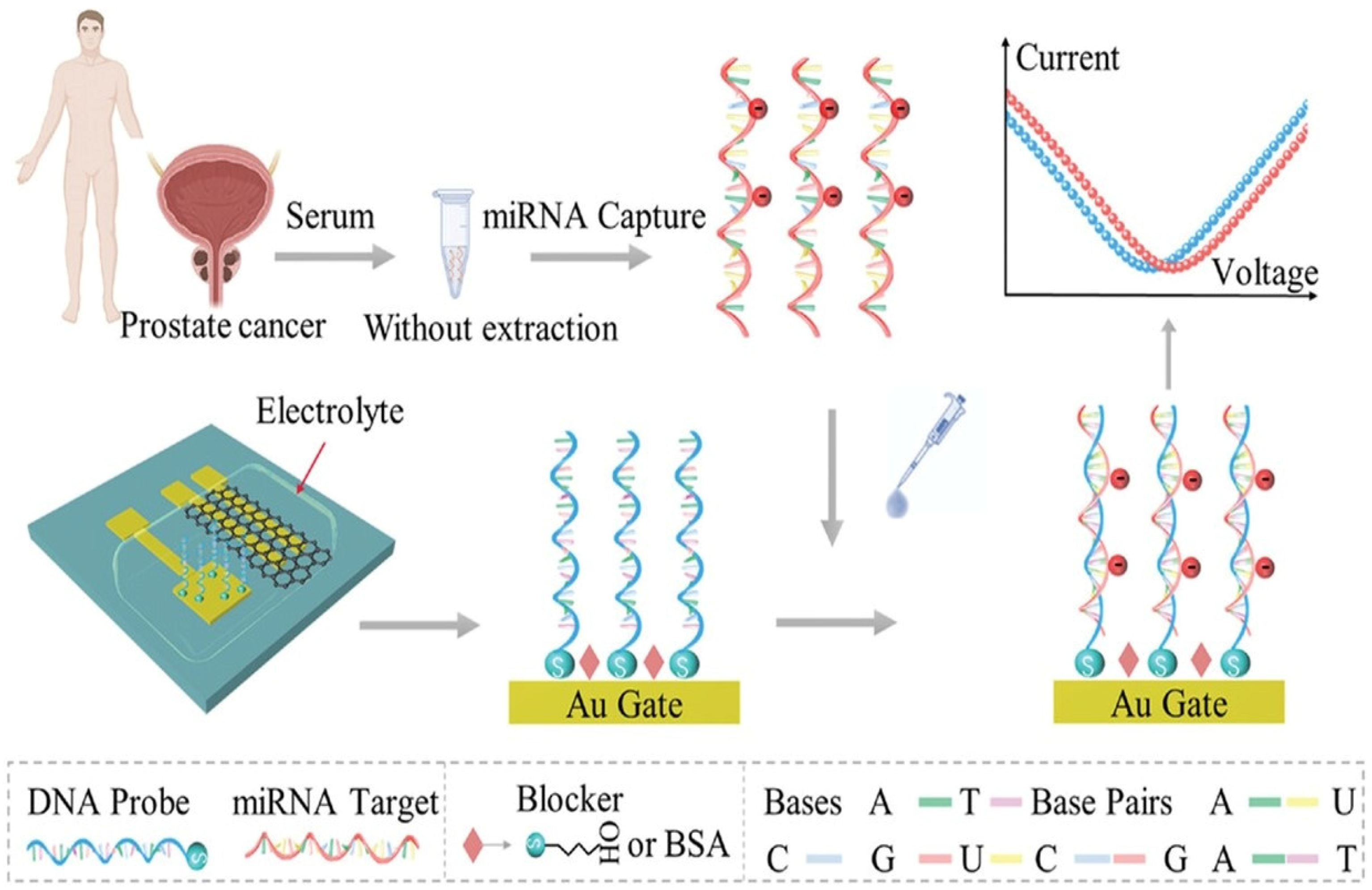 - Deng, M.; Ren, Z.; Zhang, H.; Li, Z.; Xue, C.; Wang, J.; Zhang, D.; Yang, H.; Wang, X.; Li, J. Unamplified and real-time label-free MIRNA-21 detection using solution-gated graphene transistors in prostate cancer diagnosis. Adv. Sci. 2022, 10, 2205886. [Google Scholar] [CrossRef]