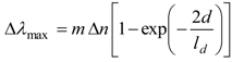 where m is the bulk refractive index response of the nanostructure, d is the effective adsorbate layer thickness and ld is the characteristic electromagnetic field decay length, modelled as an exponential decay [21]. The binding kinetics can then be monitored by tracking ∆λmax as a function of either time or analyte concentration [22].