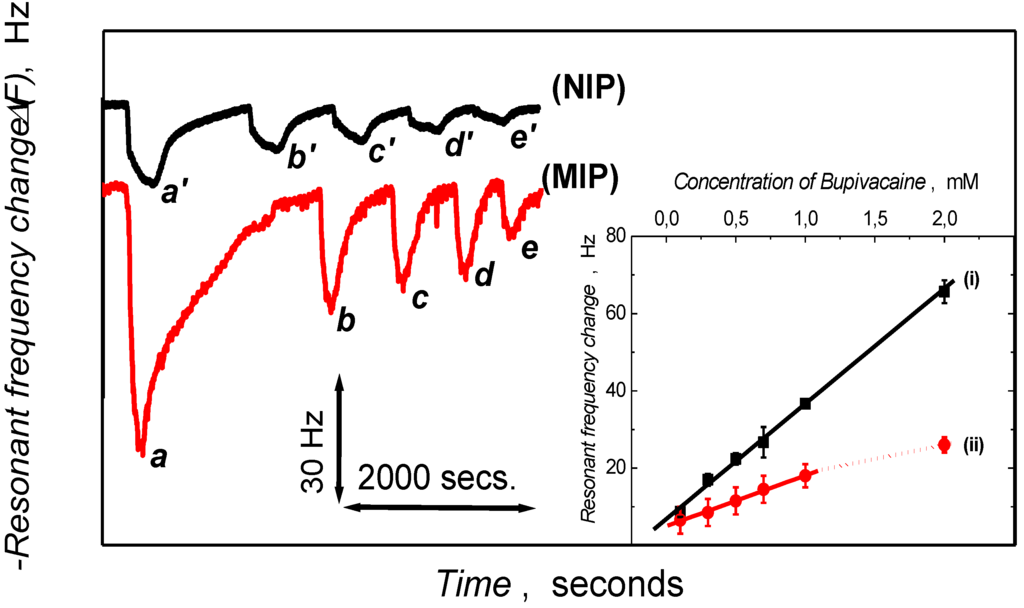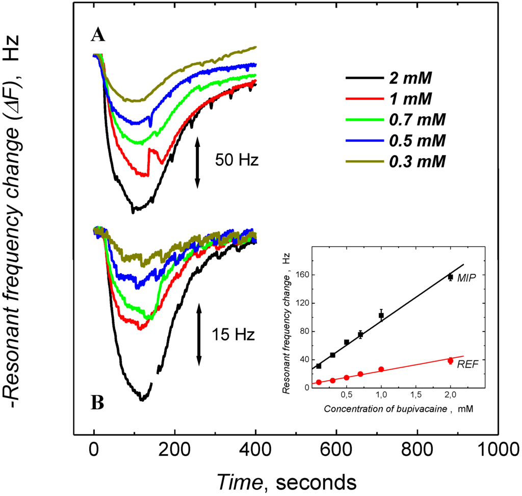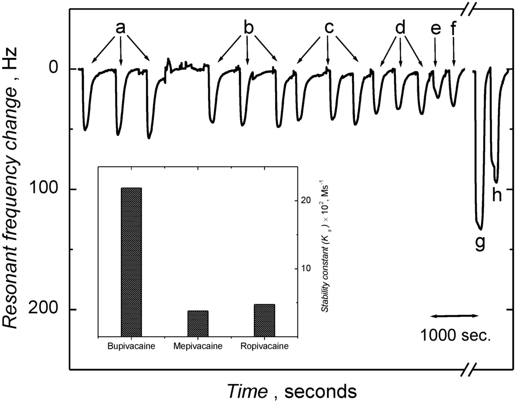 3.3. Piezoelectric Microgravimetric (QCM) Determination of Bupivacaine