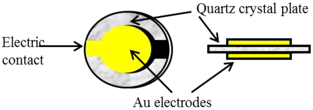 The quartz crystal microbalance (QCM) technique that uses a mass-sensitive detector based on an oscillating piezoelectric quartz crystal that resonates at a fundamental frequency by the application of an external alternating electric field. QCMs are piezoelectric devices fabricated of a thin plate of quartz, with gold electrodes affixed to each side of the plate (Figure 3).