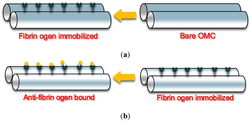 (a) Immobilization and (b) anti-fibrinogen binding with the immobilized fibrinogen.