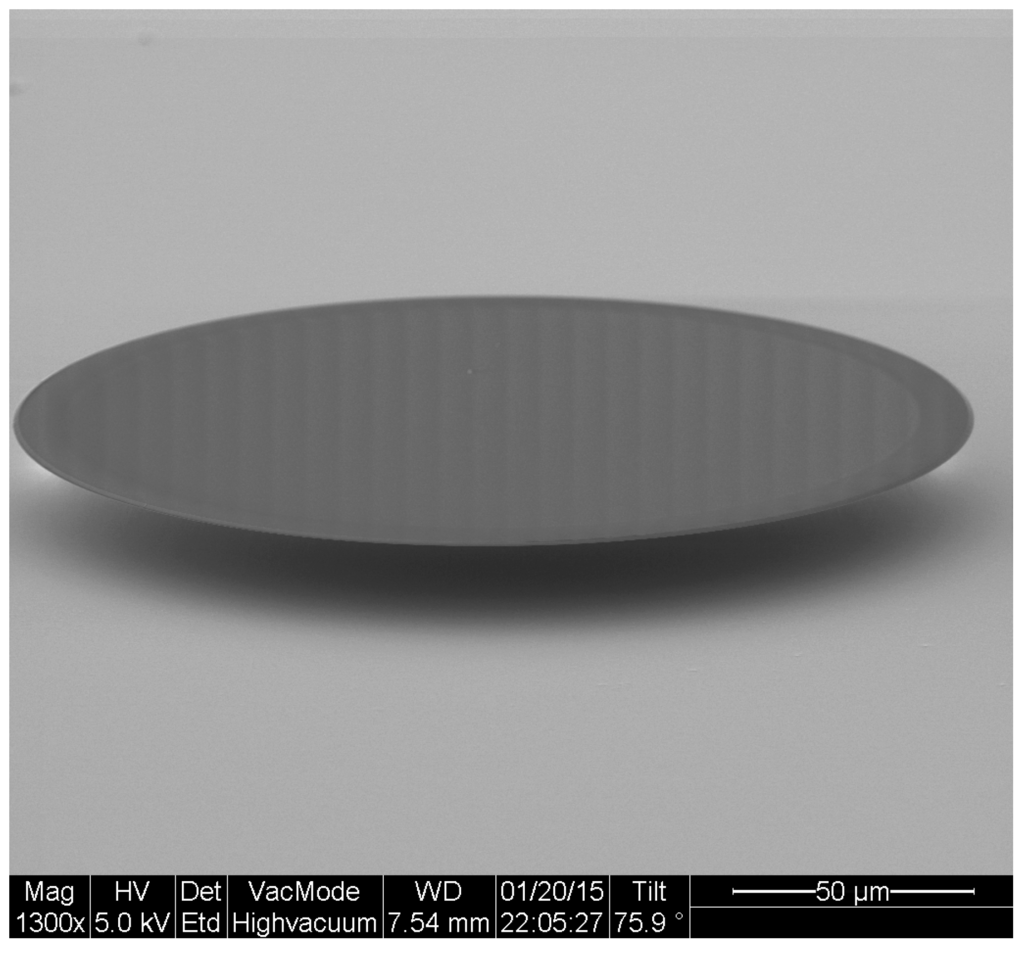 Scanning electron micrograph of an optical microdisk.