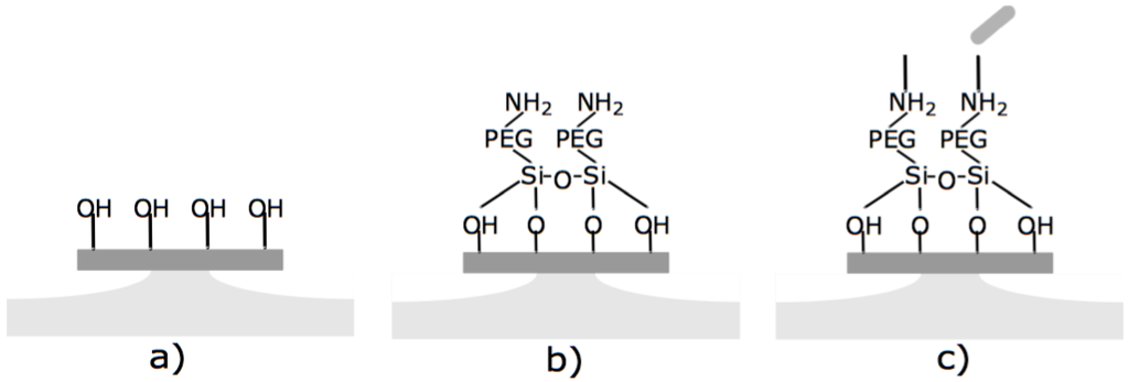 Therefore, it is useful to develop label-free sensors to detect the bacterium itself, rather than a fluorescent label. Whispering gallery mode microresonators have been recently studied for this purpose, considering their high quality factors that yield high sensitivity, as well as their selectivity, fast response, low cost and reproductibility [6,7,8,9]. In order to obtain good selectivity, the biosensor needs to be properly functionalized with a ligand that is specific to the biomolecule to be detected. This ligand may be an antibody, aptamer, complementary sequence, or other molecule that binds specifically to the target of interest while ideally protecting the resonator from non-specific binding.