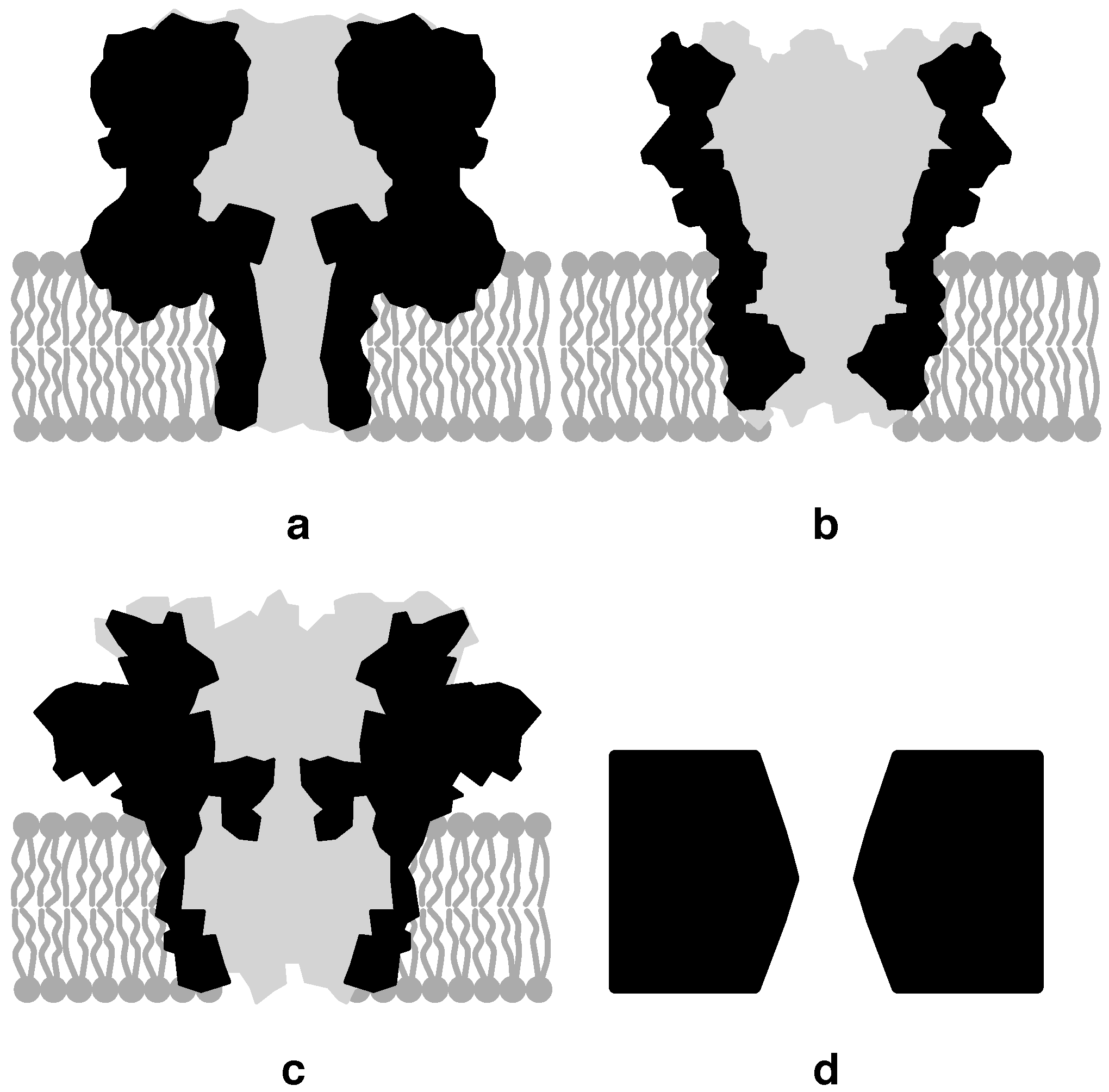 Cross-section of (a) the nanopore infused in a lipid bilayer membrane support structure, (b) MspA nanopore, (c) CsgG nanopore and (d) solid-state nanopore.