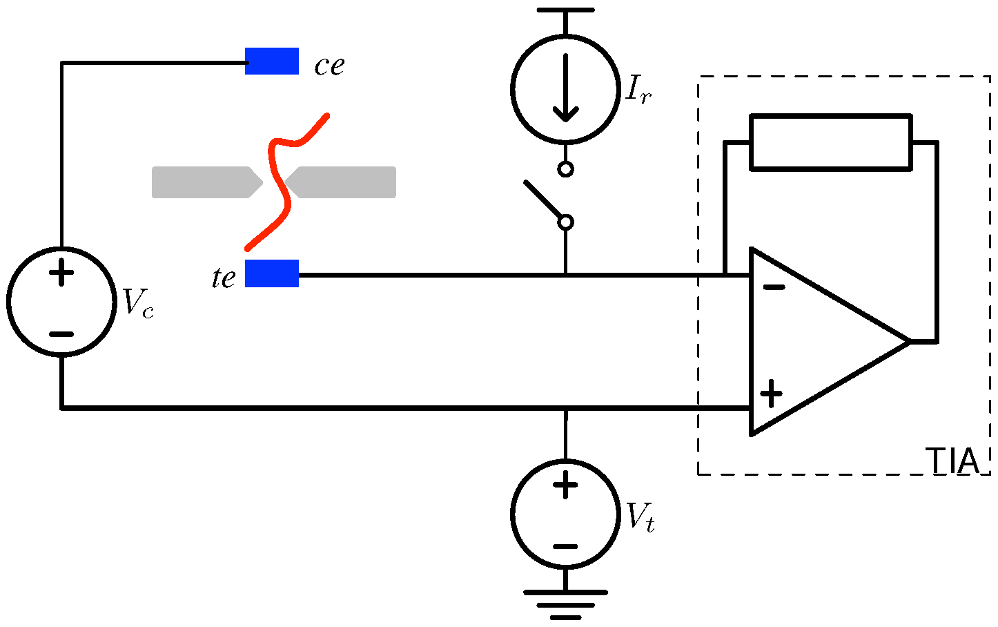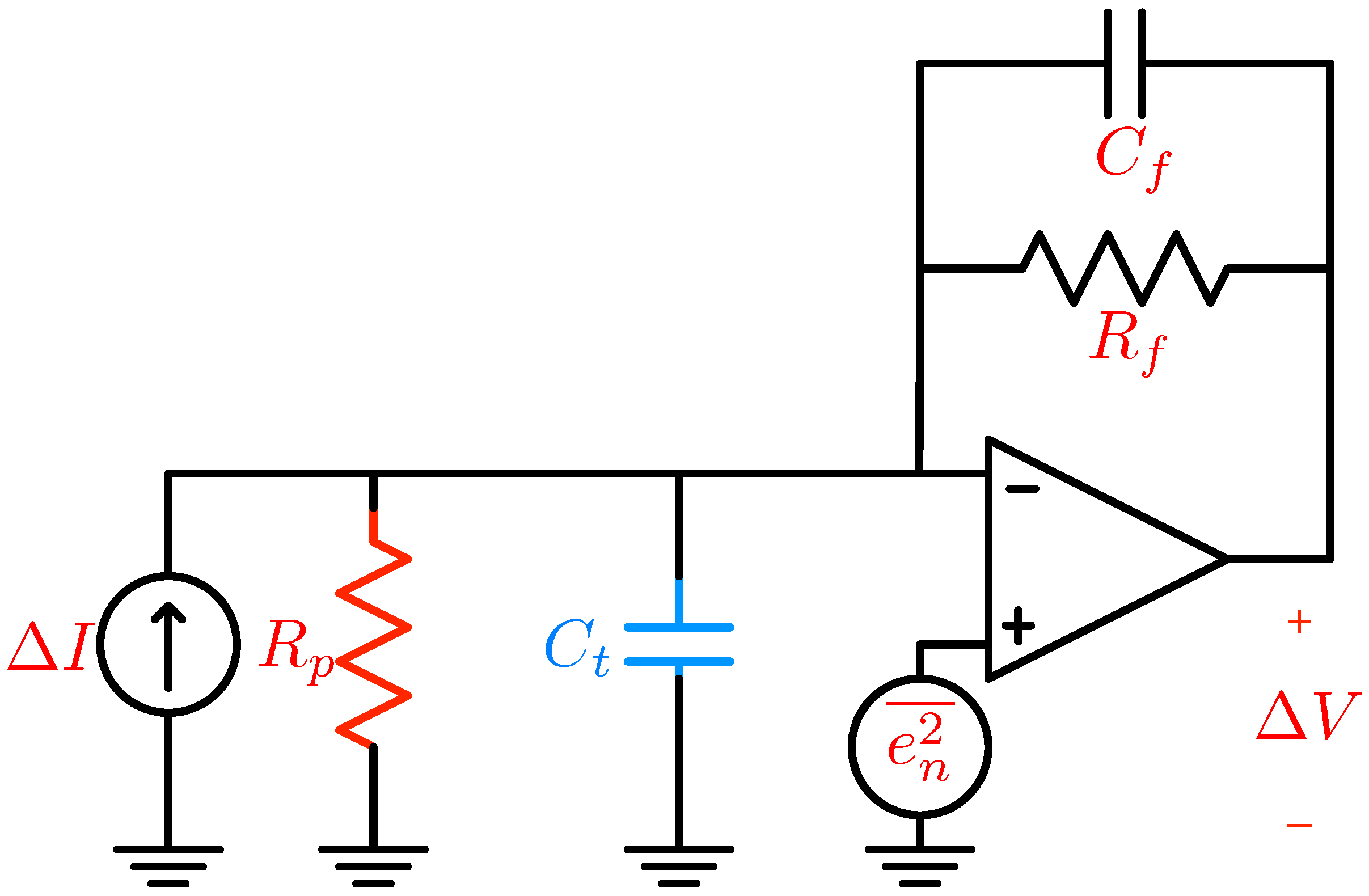 The membrane capacitance, , is another critical element of the nanopore model. Its admittance increases as the signal dynamics at its terminals speed-up. As a result, at the frequency of (or its spectral content) increases, the proportion of the signal still proportional to the conductive modulations drops. Other parts of a nanopore measurement apparatus impose like problems with the addition of capacitive parasitics. These are lumped into the component in Figure 8 and include contributors, such as wiring and circuit capacitance. Efficient pore and CMOS implementations succeed in substantially reducing these.