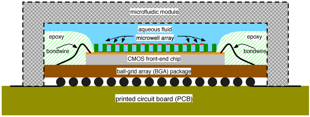 - Rothberg, J.M.; Hinz, W.; Rearick, T.M.; Schultz, J.; Mileski, W.; Davey, M.; Leamon, J.H.; Johnson, K.; Milgrew, M.J.; Edwards, M.; et al. An Integrated Semiconductor Device Enabling Non-Optical Genome Sequencing. Nature 2011, 475, 348–352. [Google Scholar] [CrossRef] [PubMed]