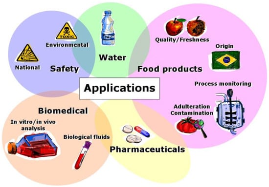 Subsequent section will describe the most relevant applications of electronic tongue systems, which are graphically resumed in Figure 4.