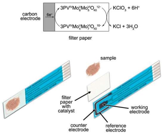 Paper-based electrochemical detection of chlorate. (Reproduced from Ref. [131], an open-access article distributed under the terms and conditions of the Creative Commons Attribution (CC BY) license (http://creativecommons.org/licenses/by/4.0/)).