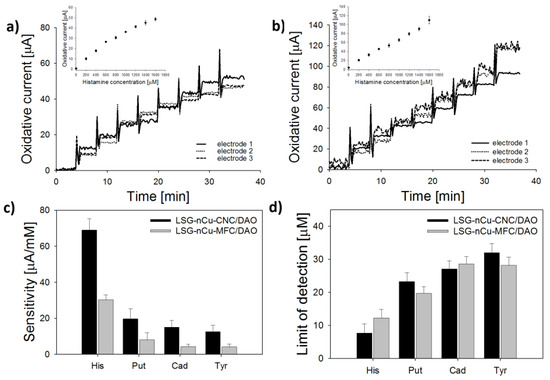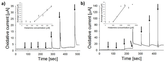 - Pérez, S.; Bartrolí, J.; Fàbregas, E. Amperometric biosensor for the determination of histamine in fish samples. Food Chem. 2013, 141, 4066–4072. [Google Scholar] [CrossRef] [PubMed]