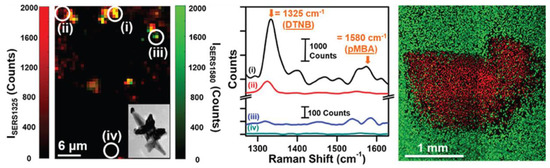 - Bowey, K.; Tanguay, J.-F.; Sandros, M.G.; Tabrizian, M. Microwave-assisted synthesis of surface-enhanced Raman scattering nanoprobes for cellular sensing. Colloids Surf. B Biointerfaces 2014, 122, 617–622. [Google Scholar] [CrossRef] [PubMed]