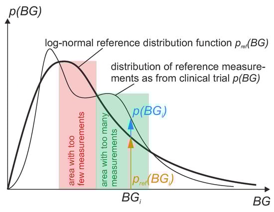 The measurement errors of CGM are influenced by the glycemic range, with higher errors in the hypoglycemic and possibly also the hyperglycemic range [54]. Furthermore, the accuracy of BG meters that are used for the reference measurements is also significantly affected by the glucose concentration [55]. The amount of paired points measured in the different glycemic ranges will therefore have a direct impact on the resulting MARD value (see Section 3.2.2).