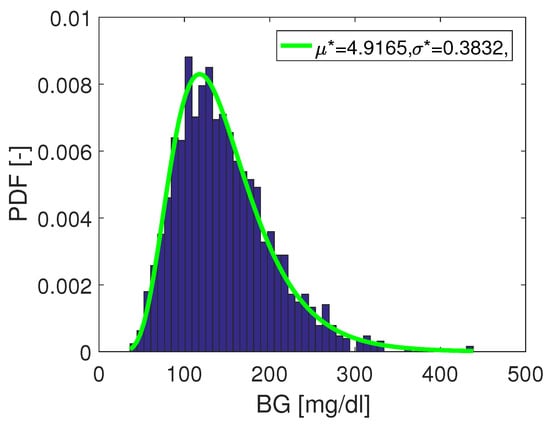where is the value measured by the CGM system, is the value measured by the reference measurement device at time , where are the times when reference measurements are available. In this paper, SMBG values are taken as reference (i.e., corresponds to the capillary BG concentration). In other works, venous BG is used instead (e.g., [19]).